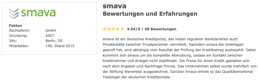 Smava ist ein Kreditvergleichsportal. Hier bekommt ihr die Online-Kredite verschiedener Banken angezeigt. Anstatt mehrfach eure Daten anzugeben, tragt ihr die Infos nur ein Mal bei Smava ein. Der Vergleich berechnet dann automatisch euren Zinssatz bei verschiedenen Banken. Darunter findet ihr auch bekannte Institute, wie Postbank, DKB oder Santander. Wenn ihr nicht wisst, was ihr von Smava halten sollt, dann findet ihr dazu natürlich auch Meinungen im Internet. Bei Check24 bekommt das Kreditportal 4,5 von 5 Sternen aus 28 Bewertungen.