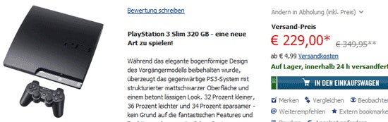 Es wird ja schon seit längerem gemunkelt, dass der Preis der PS3 auf 229 gesenkt wird. Dabei ging es aber immer um die 160GB-Variante. Dass Cyberport nun die 320GB Konsole zu diesem Preis im Angebot hat, überrascht mich doch etwas: