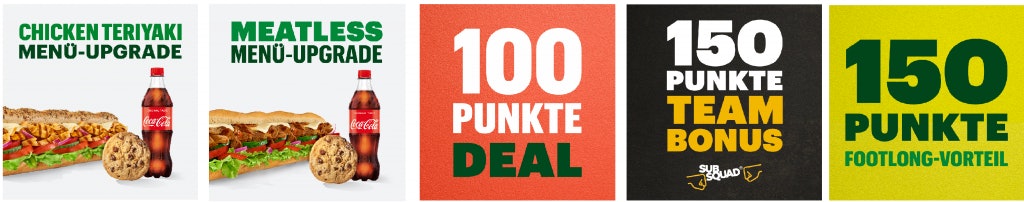 Außerdem erhaltet ihr für euren wiederkehrenden Besuch vom 17.05. bis zum 31.05.2021 100 Extra-Punkte. Bis zum 16.05.2021 könnt ihr in der SubSquad 150 statt der üblichen 50 Extra-Punkte abstauben. Zudem erhaltet ihr für das Runterladen der Subway App sowie das Bestellen eines Footlongs eurer Wahl saftige 150 Extra-Punkte.