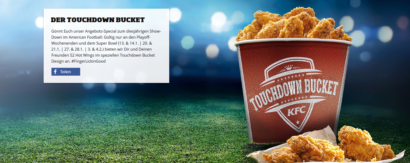 Super Bowl Deal bei KFC - Touchdown Bucket mit 52 Hot Wings für 32€