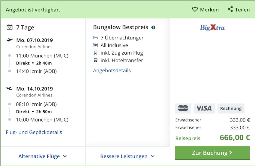 Beispielbuchung mit Flug ab München: 7. – 14. Oktober 2019: