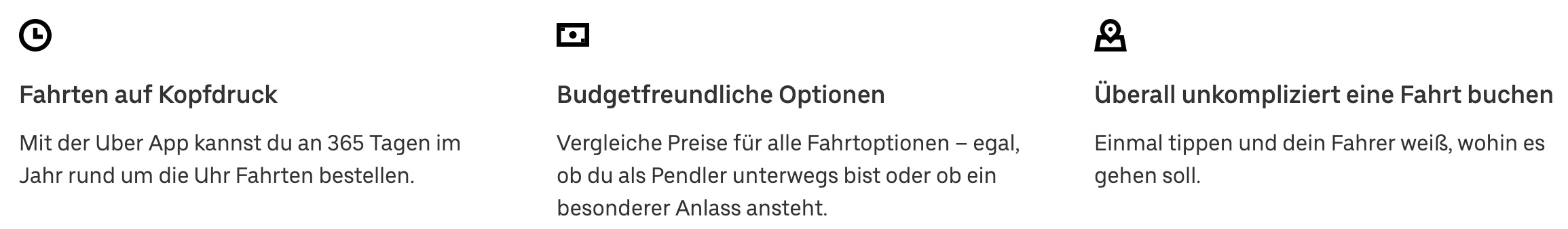 Dieses Angebot gilt für 10€ Preisnachlass über die Uber App. Gültig nur für neue Nutzer:innen der Uber App. Es können Gebühren anfallen. Siehe Website für weitere Informationen. Der Aktionscode muss vor Fahrtantritt eingelöst werden. Pro Person kann maximal ein Aktionscode eingelöst werden. Liegt der Gesamtbetrag deiner ersten Fahrt unter dem Wert des Gutscheins (10 €), verfällt der Restbetrag. Übersteigt der Fahrtpreis den Gesamtbetrag des Aktionscodes, wird die registrierte Zahlungsmethode in deinem Profil mit dem Restbetrag belastet. Diese Aktion ist nicht kombinierbar mit anderen Werbeaktionen. Uber behält sich das Recht vor, die Nutzung der Werbeaktion für Konten zu verweigern, die in betrügerischer Absicht erstellt wurden. Gültig in Deutschland, in Gebieten, in denen Uber verfügbar ist. Die Aktion läuft am 31.12.2021 ab.