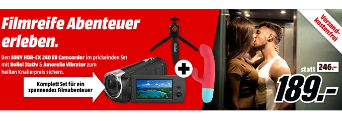 Übrigens: Ihr könnte eure Erlebnisse mit den Sextoys auch filmisch zum Sparpreis festhalten. Wie praktisch, dass Media Markt auch direkt daran gedacht hat 😉 Den passenden Kombi-Deal bestehend aus Vibrator, Kamera und Stativ findet ihr hier.