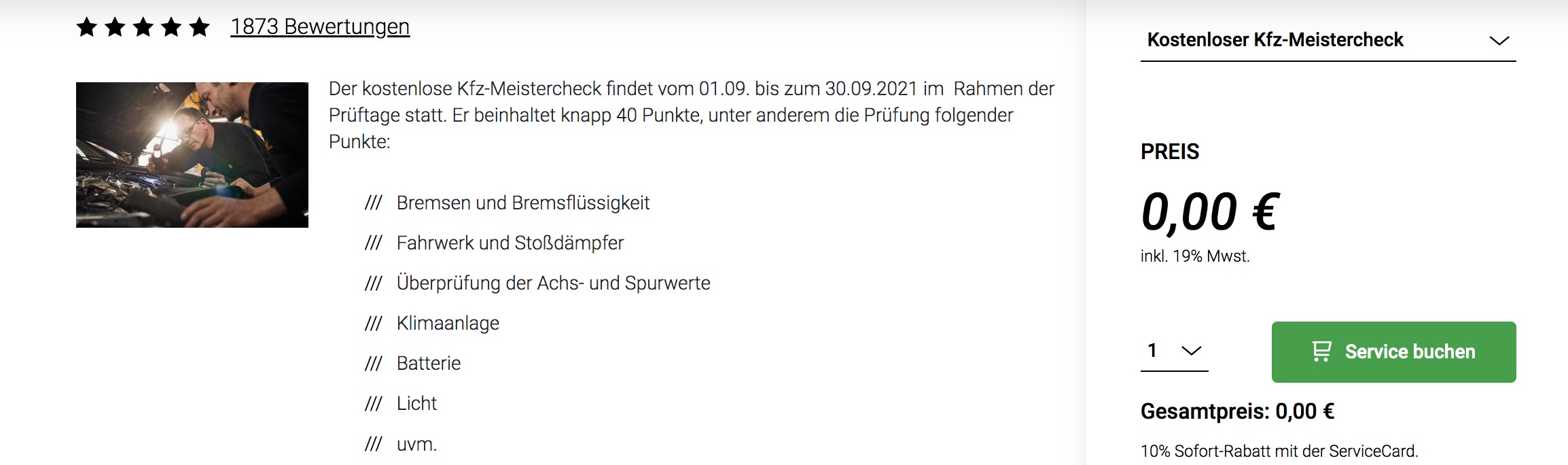 Die kostenlosen Termine findet ihr im Zeitraum bis zum 31. März. Und da in der Vergangenheit hierüber immer mal wieder gerätselt wurde: Den kostenlosen Check gibt es nur für PKW – euer Zweirad oder den großen Brummi müsst ihr separat überprüfen lassen.