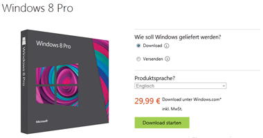 - Windows 8 Professional Upgrade für 29,99