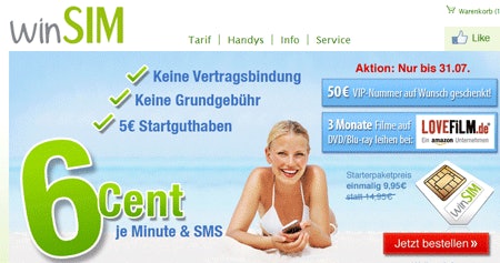 winSIM 6-Cent-Prepaidtarif mit kostenloser VIP-Wunschrufnummer für 10€ - günstigster Prepaiddiscounter