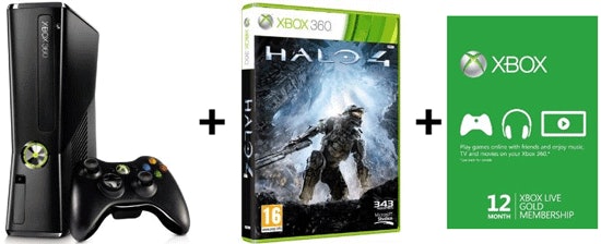 Auf Amazon UK findet man ein schickes Bundle, bestehend aus einer Xbox 360 mit 250GB, Halo 4, einer Jahresmitgliedschaft für Xbox Live und einer Menge Rabatt: