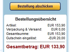 Update am 04.07.11: Hammer…sogar mit der 20 Bundleaktion bei Amazon ist es kombinierbar (Danke müller). Legt man ein Spiel aus der Aktion in den Warenkorb, gibt es noch 20 Rabatt. Einfach Xbox und das Spiel zusammen in den Warenkorb werfen und bis zum letzten Bestellschritt durchklicken. Dort wird der Rabatt abgezogen.