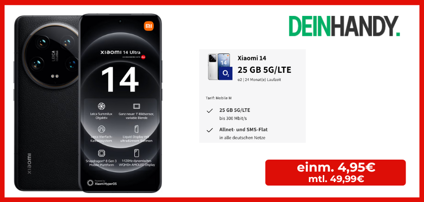 - + 39,99€ Zuzahlung für das Xiaomi 14 Ultra 5G (Preisvergleich: 1.119€)