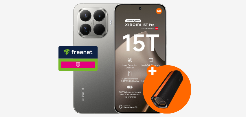 Xiaomi 15T für einmalig 151€ + GRATIS Lautsprecher » mit 60GB 5G o2 Allnet-Flat nur 19,99€ bei tarife.mediamarkt.de