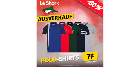 Bei Sportspar könnt ihr euch jetzt günstig mit neuen Poloshirts eindecken! Die Marke "Le Shark" wird von einem kleinen Hai-Logo markiert und ihr habt 33 verschiedene Farben und Designs zur Auswahl. Holt euch schnell noch eure Größe!