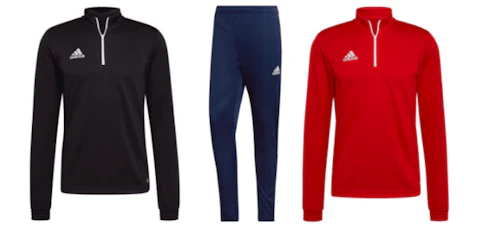 Erstellt euch euren Trainingsanzug von Adidas doch einfach selbst! Hose und Kapuzenpulli aus der Serie Squadra 21 gibt es im Onlineshop von Tactix. Den Hoodie gibt es in fünf verschiedenen Farben während es die Hose nur in Schwarz zu kaufen gibt. Vorhanden sind die Größen S bis XXL.