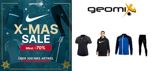 Wenn ihr derzeit auf der Suche nach sportlichen Markenklamotten seid, dann habe ich was für euch. Im Geomix Soccer-Shop gibt es derzeit fette Rabatte auf Nike-Artikel abzustauben. Hier im Deal stellen wir euch einige lohnenswerte Beispiele vor, die sich im Vergleich zur Konkurrenz gut schlagen. ↓