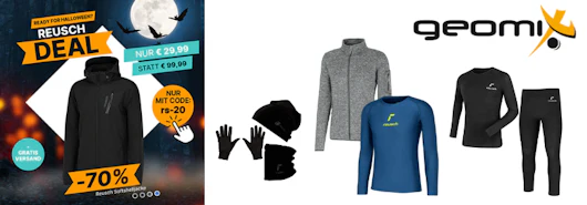 Geomix dreht wieder an der Preisschraube und lässt euch die wärmenden und funktionalen Jacken & Sportartikel von Reusch günstiger shoppen. Schnappt euch zum Beispiel eine Softshelljacke mit viel Größen- und Farbauswahl für 29,99€! Ihr braucht für alle Deals einen Gutscheincode - wir versorgen euch mit allen Angeboten. Schlagt zu, solange die Codes gültig sind!