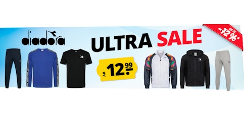 SportSpar hat einen weiteren Marken-Sale am Start: Ihr könnt euch im Diadora Ultrasale über bis zu 72% Rabatt erfreuen. Reduziert sind T-Shirts, Trainingshosen, Hoodies, Jacken und vieles mehr. Viel Spaß beim Stöbern!