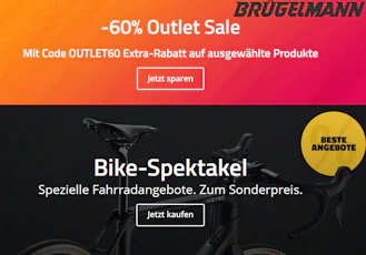 Bei Brügelmann gibt es unfassbare 60% Extra-Rabatt auf die Outlet-Artilel. So bekommt ihr richtig gute Fahrradhelme, Bekleidung, Motorradzubehör und Ersatzteile für Schnäppchenpreise.