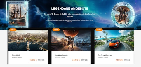 - Ubisoft LEGENDARY Sale mit 10€ Rabatt bei store.ubisoft.com/de