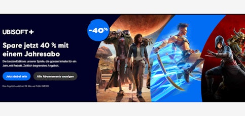 - 40% Rabatt auf Ubisoft Jahresabo für 107,99€ bei store.ubisoft.com (statt 180€)