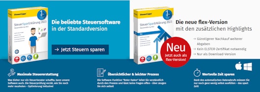 Wer noch die Stuererklärung für das letzte Jahr vor sich hat und eine passendes Tool dafür sucht, sollte sich mal die unterstützende Software von Steuertipps.de ansehen. Hier bekommt ihr aktuell 19% Rabatt auf die SteuerSparErklärung in allen Versionen. Viel Spaß beim Steuern sparen!