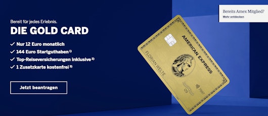 - American Express Gold mit 144€ Startguthaben – kostenlos im 1. Jahr