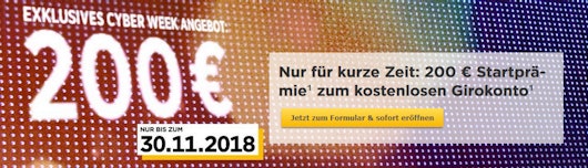 - Commerzbank Cyber Week Angebot: 200€ Startprämie für kostenloses Girkonto bei commerzbank.de