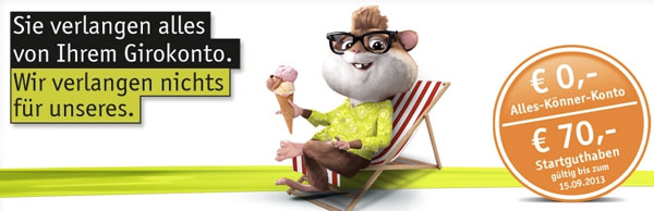 Momentan läuft noch eine deutlich bessere Aktion! Ihr bekommt 150 Prämie und müsst das Konto nicht mal als Gehaltskonto führen. Dazu ist es auch noch bedingungslos kostenlos!