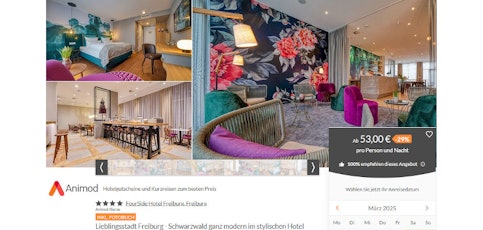 - 2ÜF im 4* Hotel FourSide Freiburg ab 116,99€/Person bei Animod.de