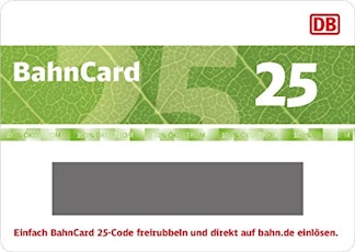 - BahnCard 25 (27-59 Jahre) für 49,50€ inkl. Versand bei Amazon.de (Preisvergleich: 62€)