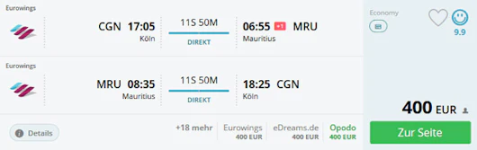 Gestern haben wir euch ja bereits die guten Eurowings-Preise für Flüge quer durch Europa gezeigt. Heute haben unsere Kollegen von Tripdoo noch einen weiteren richtig guten Preis gefunden – und zwar etwas weiter weg nach Mauritius.