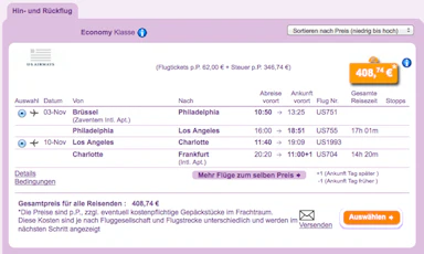 - Kopenhagen Los Angeles / Las Vegas – Frankfurt für 373