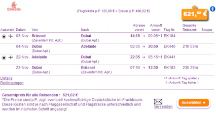- Reisezeitraum im Beispiel ist zwischen dem 20. Oktober 2014 und 12. Dezember 2014