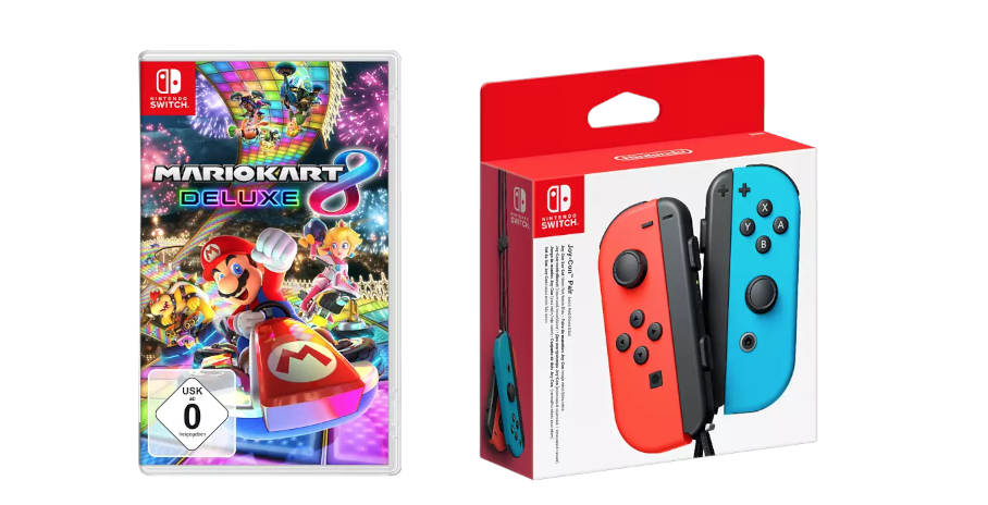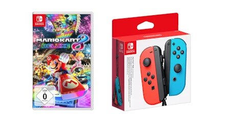 Da geht doch ein Kindheitstraum in Erfüllung. Mario Kart könnt ihr auf der Switch nicht nur mit Controller, sondern noch viel besser mit Joy Cons spielen. Bei Media Markt bekommt ihr das Spiel zusammen mit einem Joy Con-Paar als Schnäppchen-Bundle. Scrollt dazu auf der Angebotsseite etwas nach unten zu ‚Empfohlene Kombinationen‘, dort könnt ihr beides in den Warenkorb legen.