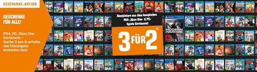 Passend zur aktuellen Geschenke-Welle haut Saturn auch Games zum Sparpreis raus. Heute ist eine 3-für-2-Aktion gestartet, bei der ihr auch PC-Spiele und Konsolen-Games kombinieren könnt. Da ihr immer wild auf Nachschub für die Konsole oder den PC seid, haben wir uns mal die Spiele vorgenommen.
