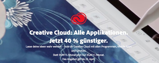 - 40% Rabatt: Adobe Creative Cloud für 35,69€/Monat bei Adobe.com (sonst: 59,49€/Monat)