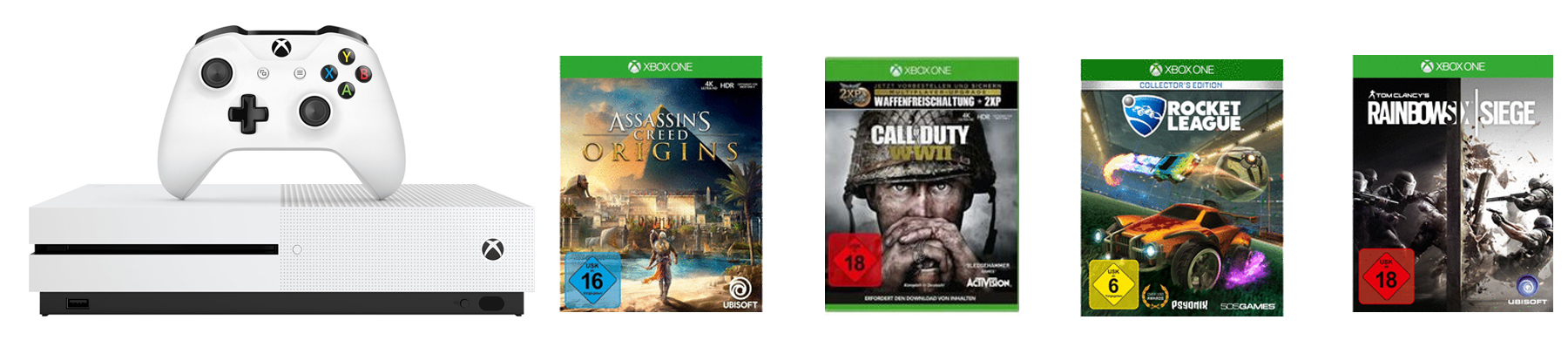 Amazon bietet euch gerade diverse Xbox One S Bundles zum guten Preis an. Neben der Konsole sind auch heiße Titel wie Assassins‘s Creed Origins oder Call of Duty: WWII mit in der Verlosung. Wer sich ein Paket schnüren möchte, kann im Preisvergleich ordentlich sparen. Eine Auflistung aller Bundles findet ihr natürlich im Artikel.