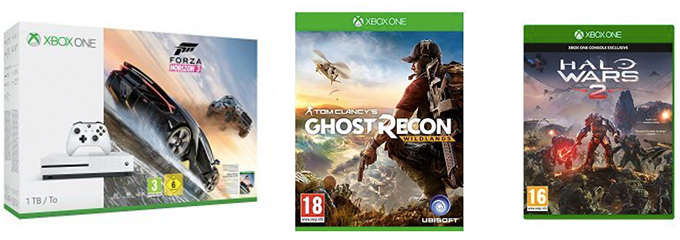 - Microsoft Xbox One S 1TB Konsole mit Forza Horizon 3 + Tom Clancy’s Ghost Recon: Wildlands + Halo Wars 2 für 321,43€ inkl. Versand bei amazon.co.uk (Preisvergleich: 354€ + 60€ + 44€ = 458€)