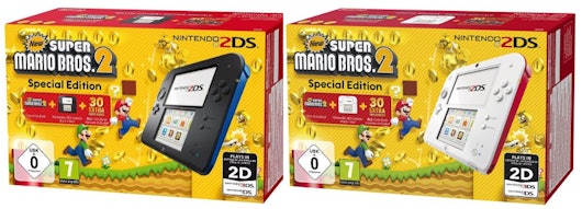 - Nintendo 2DS in schwarz/blau + New Super Mario Bros. 2 für 79€ inkl. Versand bei Amazon.de (Vergleichspreis: 95€) – oder bei Media Markt + ggfs. 4,99€ Versand