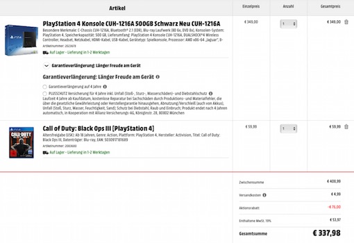 Wer eine Playstation im Battlefront-Bundle haben möchte, bekommt gerade bei eBay ein gutes Angebot dafür, das jedoch die 10%-Marke nicht ganz knackt: