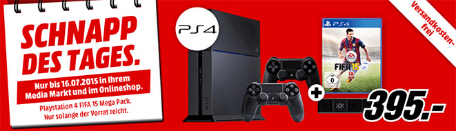 - Sony Playstation 4 500GB + 2. Controller + GTA V für PS4 für 394 bei Filialabholung im Saturn (Preisvergleich: 334 + 55 + 53 = 442)