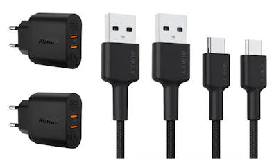 - 2x AUKEY Ladegerät 36W Quick Charge (PA-T16) + 2x AUKEY USB-C auf USB-A-Kabel (CB-CMD29) für 25,99€ inkl. Versand bei manzude.de (Preisvergleich: 43€ + 13€ = 56€)