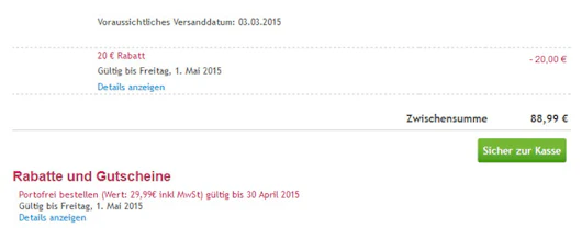 - Versandkosten entfallen im Bestellprozess