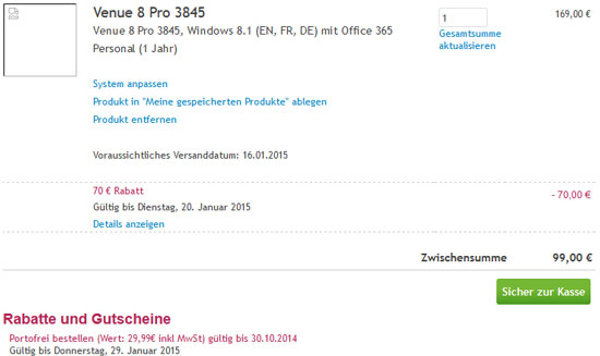 - Dell Venue 7 Tablet mit WiFi für 69 inkl. Versand bei Dell.de (Preisvergleich: 99)