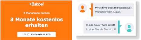 | Aktion | Kostenlos Babbel ausprobieren | Bis auf Widerruf |