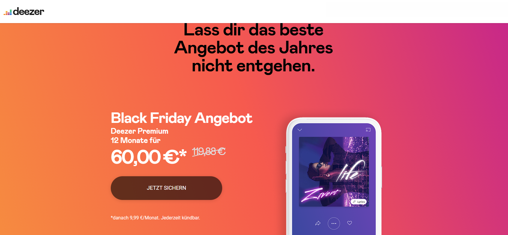 | Angebot | deezer HiFi 3 Monate gratis nutzen | Bis auf Widerruf |