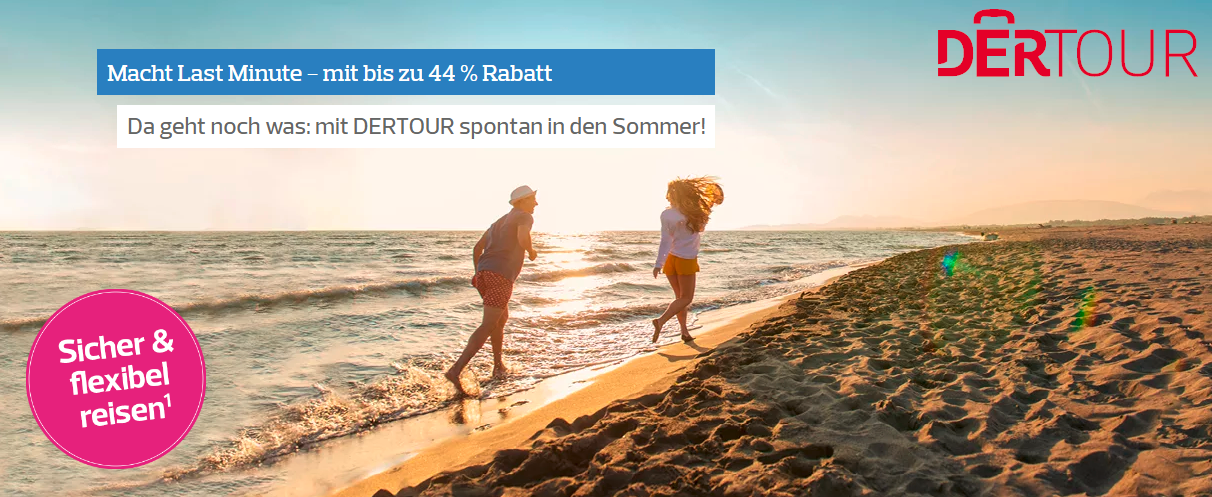 Nutzt oben rechts im Menü den Link “Aktuelles & Angebote”, um euch die neuesten DERTOUR Angebote anzeigen zu lassen. Darunter findet ihr besonders günstige Frühbucher- beziehungsweise Lastminute-Angebote des Reiseveranstalters. Wie viel Prozent ihr auf die dort aufgeführten Reiseziele spart, können wir euch aber leider nicht sagen, denn einen “alten Preis” gibt DERTOUR auf dieser Seite nicht an. Wir legen euch außerdem ans Herz, euch für den kostenlosen DERTOUR Newsletter einzuschreiben, wenn ihr an zukünftigen Aktionen interessiert seid. So verpasst ihr auf sicher auch keine aktuelle Gutscheinaktion mehr.