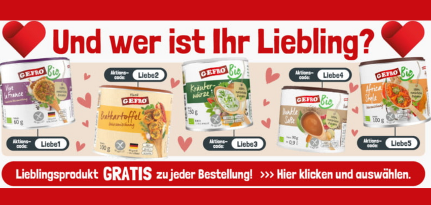 | Gratis Artikel | Jede 100. Bestellung bei Gefro umsonst! | Bis auf Widerruf |