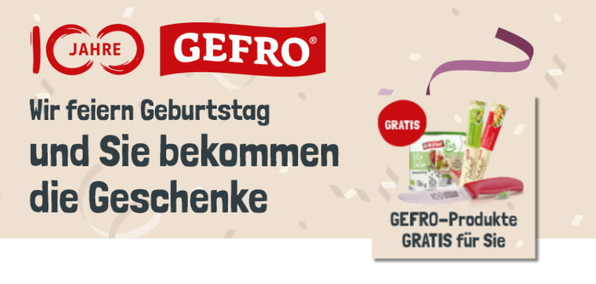 | 30% Rabatt | Jubiläums-Paket 2024 "100 Jahre GEFRO" mit 30% Rabatt auf ausgewählte Produkte von GEFRO! | Bis auf Widerruf |
