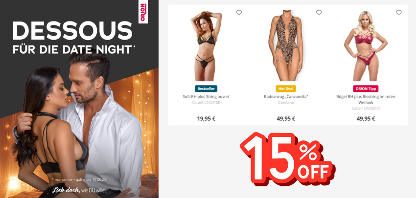 Orion ist nicht nur eins der vielen Sternbilder und ein riesenhafter Jäger der griechischen Mythologie, sondern auch einer der Marktführer im Bereich des Erotik Versandhandels. Die Firmengeschichte geht sogar zurück bis in die 40er Jahre. Wenn ihr hier kauft, seid ihr also in den besten Händen und wenn ihr einen Orion Gutschein nutzt, habt ihr alles richtig gemacht. Das Angebot des Shops ist groß und vielfältig. Egal ob ihr Dessous, erotischen Schmuck, Spielzeuge, Gleitgel oder Fetisch-Artikel sucht, bei Orion findet ihr das alles. Schaut euch die Themenwelten für eine erste Inspiration an. Dort gibt es sogar die Rubrik “Tipps gegen Flaute im Bett”. Falls ihr demnächst ein stabileres Bett braucht, schaut euch im baur Onlineshop um. Mit einem baur Gutschein wird auch der Einkauf dort etwas günstiger für euch. Noch ein Tipp für die Leckermäuler unter euch: Kennt ihr schon die erotischen Leckereien, wie die Dessous aus Zuckerperlen, die zum Anknabbern einladen? Das wäre doch mal eine Vorspeise der besonderen Art.