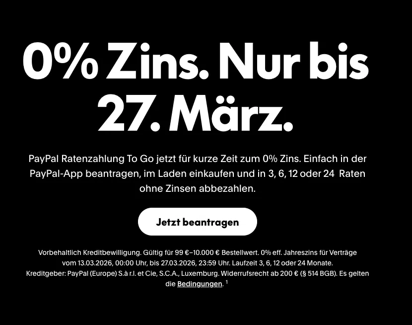 - PayPal Ratenzahlung nutzbar.