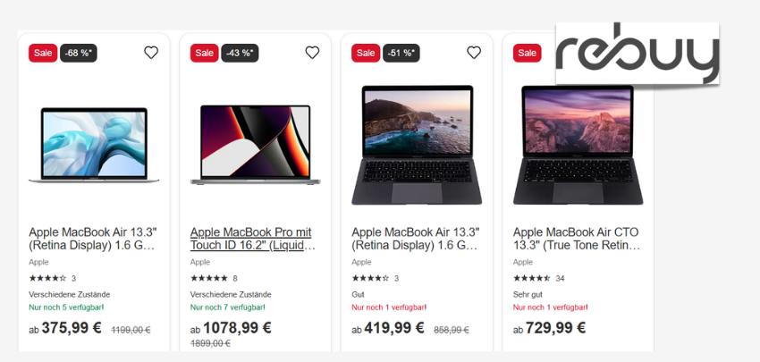 - Spart in den reBuy Angeboten bis zu 70 Prozent im Vergleich zu Neuware.